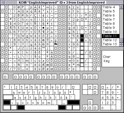 Now we got our unique keyboard layout not conflicting with other existing ones anymore. Open the KCHR resource and you'll see your keyboard and the characters mapped to it.