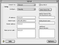 Note: an easy way to replace Open Transport 1.3 with the 1.3.1 files is to drag all of the old files to the desktop, then drag the new files and let go of them over the closed system folder. The Mac will place the files where they belong and you can restart your Mac. You can then delete or save the old files. Once Open Transport 1.3 or 1.3.1 are installed, you can open and set-up your TCP/IP control panel: