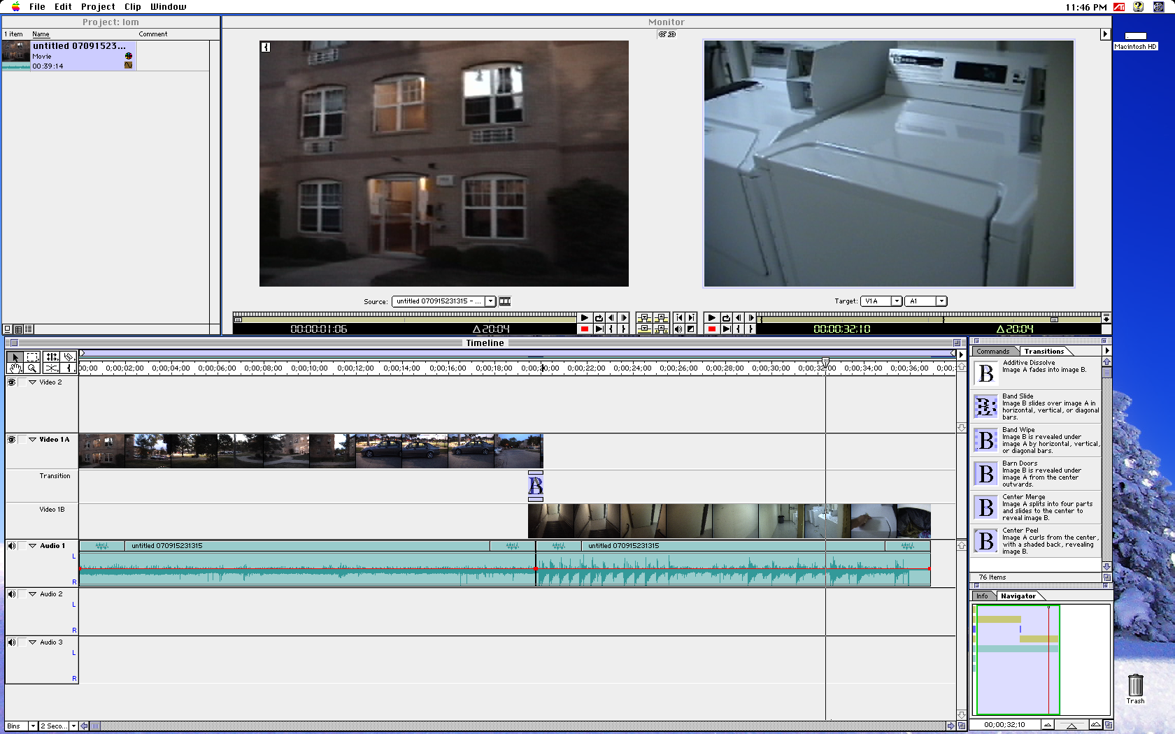 So much to update today. I went home and got my DV camera and came back to school for some testing. Here are my observations thus far: FireWire video capture, audio capture, and device control works perfectly. I have no trouble importing video into Premiere 5.1c, nor do I have any trouble controlling my camera from within Premiere. Even scrubbing back and forth works smoothly. Very awesome! 2_capture_1.jpg The Apple FireWire Kit card ships with four system extensions, DV Enabler 1.0, DV Support 1.0, FireWire Enabler 1.0, and FireWire Support 1.0.1. I set out to find later versions of these extensions that will still work. After replacing these four extensions with the ones included in my Mac OS 8.6 install CD, everything still worked. Those are versions 1.0.2, 1.0.2, 2.0, and 2.0 respectively. Replacing them with the drivers found in a Mac OS 9.0.4 CD broke everything. I will be packaging the Mac OS 8.6 FireWire extensions as well as the FireWire test utility for distribution on System 7 Today. Because of this, I see no reason why any other card that would normally work with these versions of the extensions wouldn't work in System 7. This may mean it was not necessary for me to hunt down the earliest FireWire PCI card I could find (the Apple one). I can, however, verify that I have the Allego FW400 card and it does not work... which would make sense since it requires Mac OS 9.x. My external FireWire hard drive does not seem to work. I'm not sure if I'm missing some sort of extension, or if it just plain won't work. I also haven't tried printing video directly back to my camera, as I can't figure out how to tell Premiere to do this over FireWire. Here is the first video I imported, edited, and compressed entirely within Mac OS 7.6.1. I would imagine this is the first time any such thing has been posted to the internet. The quality is low because it's extremely compressed (the best that QuickTime 5 can do). It is full DV quality on my Power Mac 8600. Finally, below is a nifty screenshot. You can see the full 1680 x 1050 size version here. I am going to begin working on a "FireWire" page for the Help Center, which will have more pictures and details about the specific card. I'm also going to try to figure out how low this will go (7.5.x, etc)... and hopefully can figure out this external hard drive situation. Please post any comments, questions, or suggestions you may have to help this project along!
