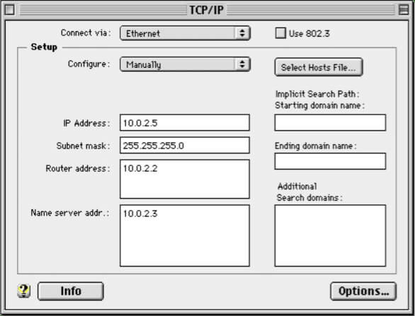 Note: an easy way to replace Open Transport 1.3 with the 1.3.1 files is to drag all of the old files to the desktop, then drag the new files and let go of them over the closed system folder. The Mac will place the files where they belong and you can restart your Mac. You can then delete or save the old files. Once Open Transport 1.3 or 1.3.1 are installed, you can open and set-up your TCP/IP control panel: